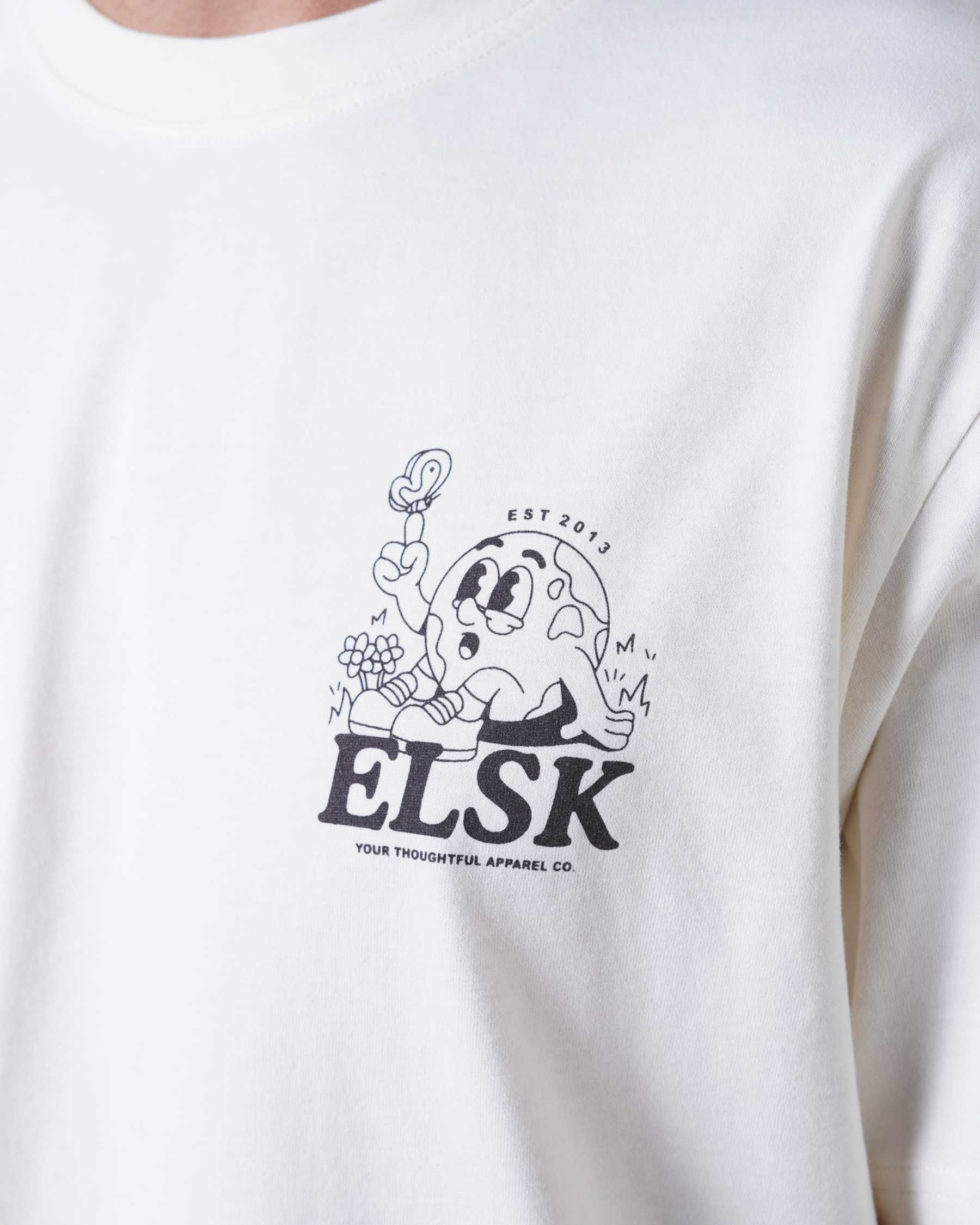 T-shirt fra ELSK. Lavet i børstet bomuld, hvilket gør den utrolig blød. T-shirten er råhvid.