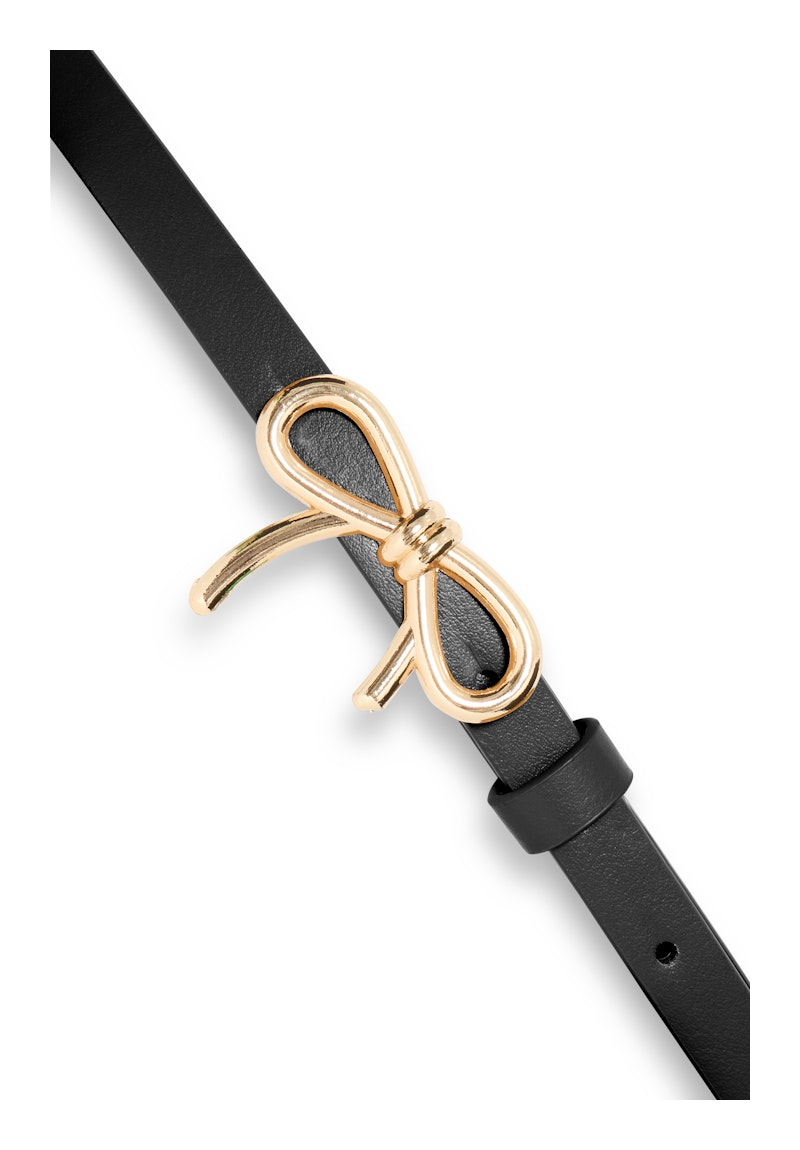 Damebælte fra Ichi med smal pasform og elegant sløjfeformet spænde i metal, velegnet til både bukser, shorts og kjoler. Justerbar og behagelig til hverdags- og festbrug.