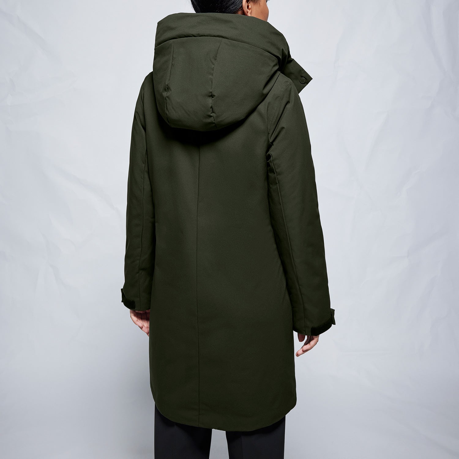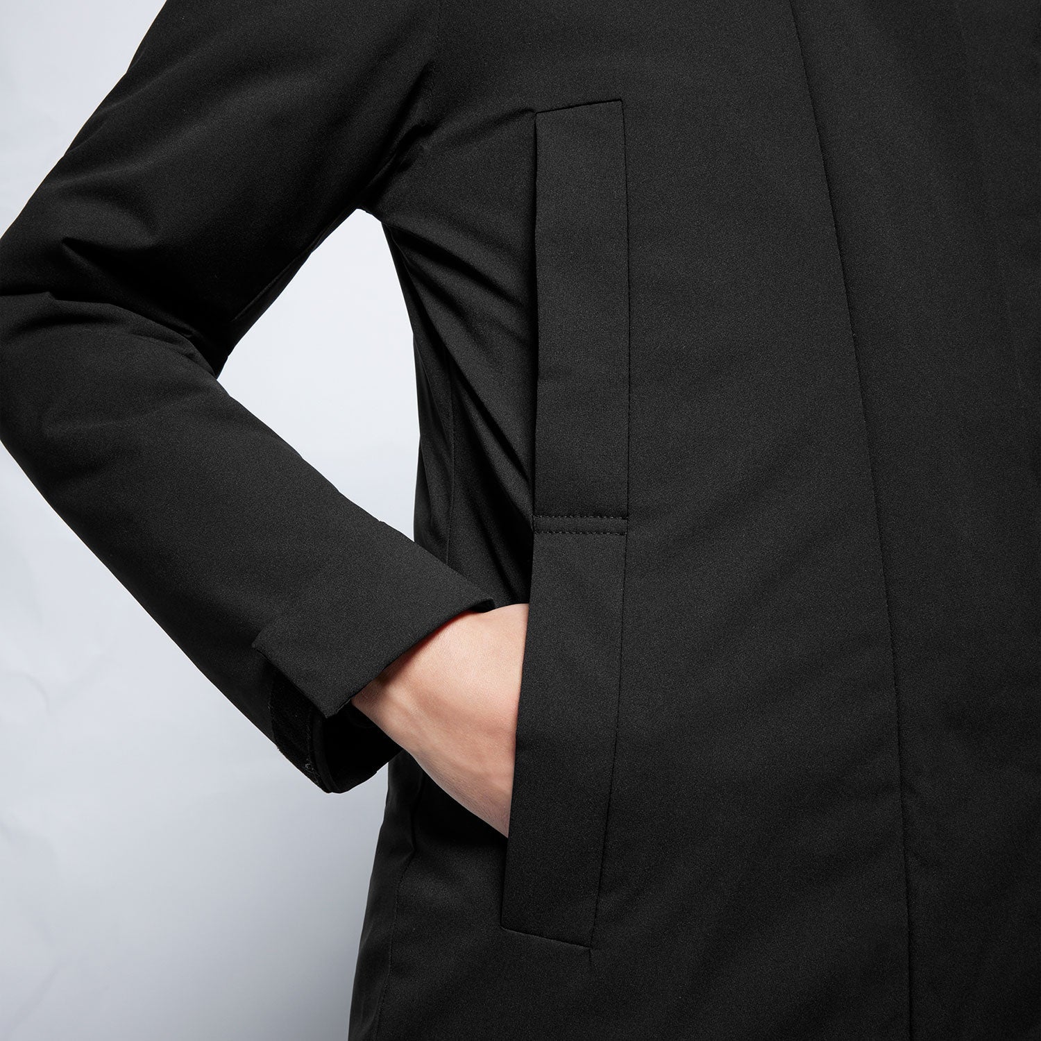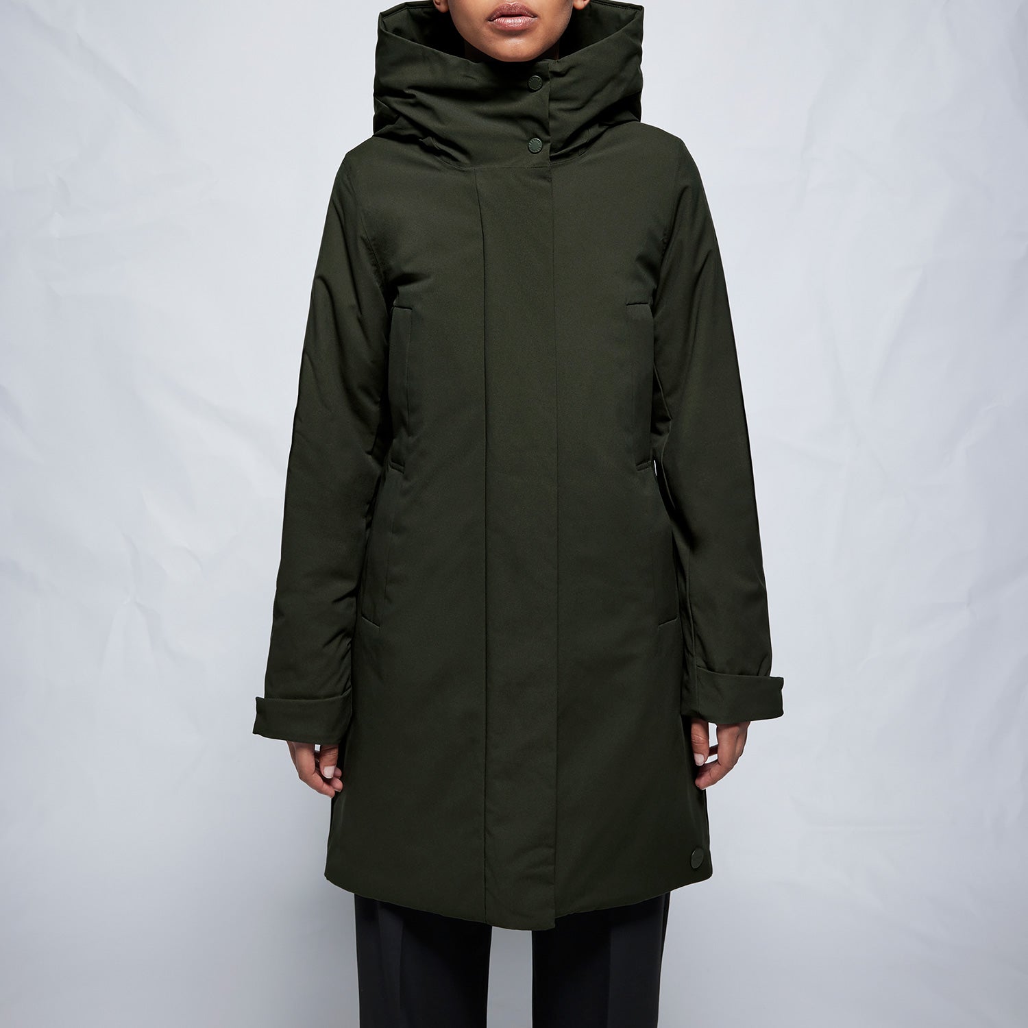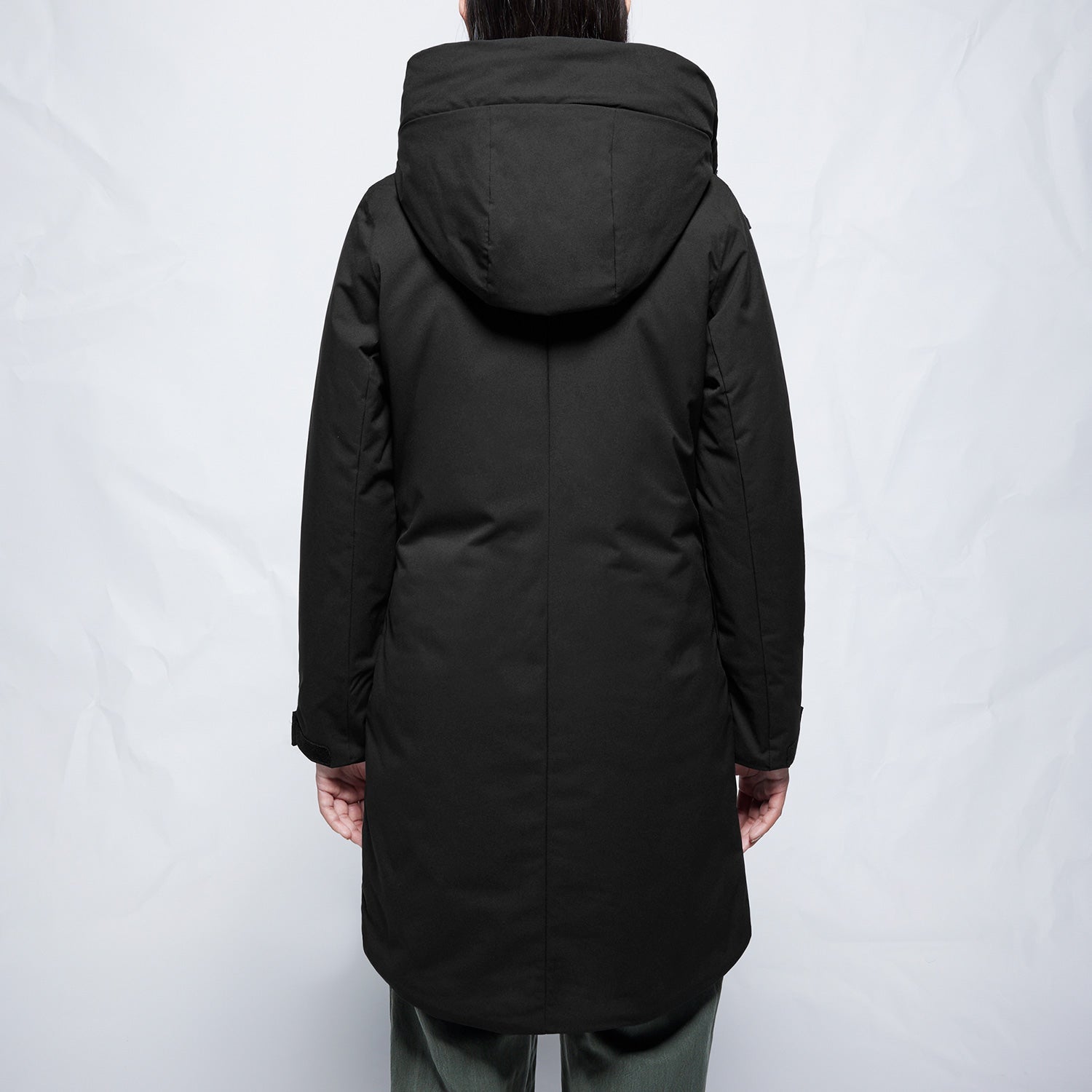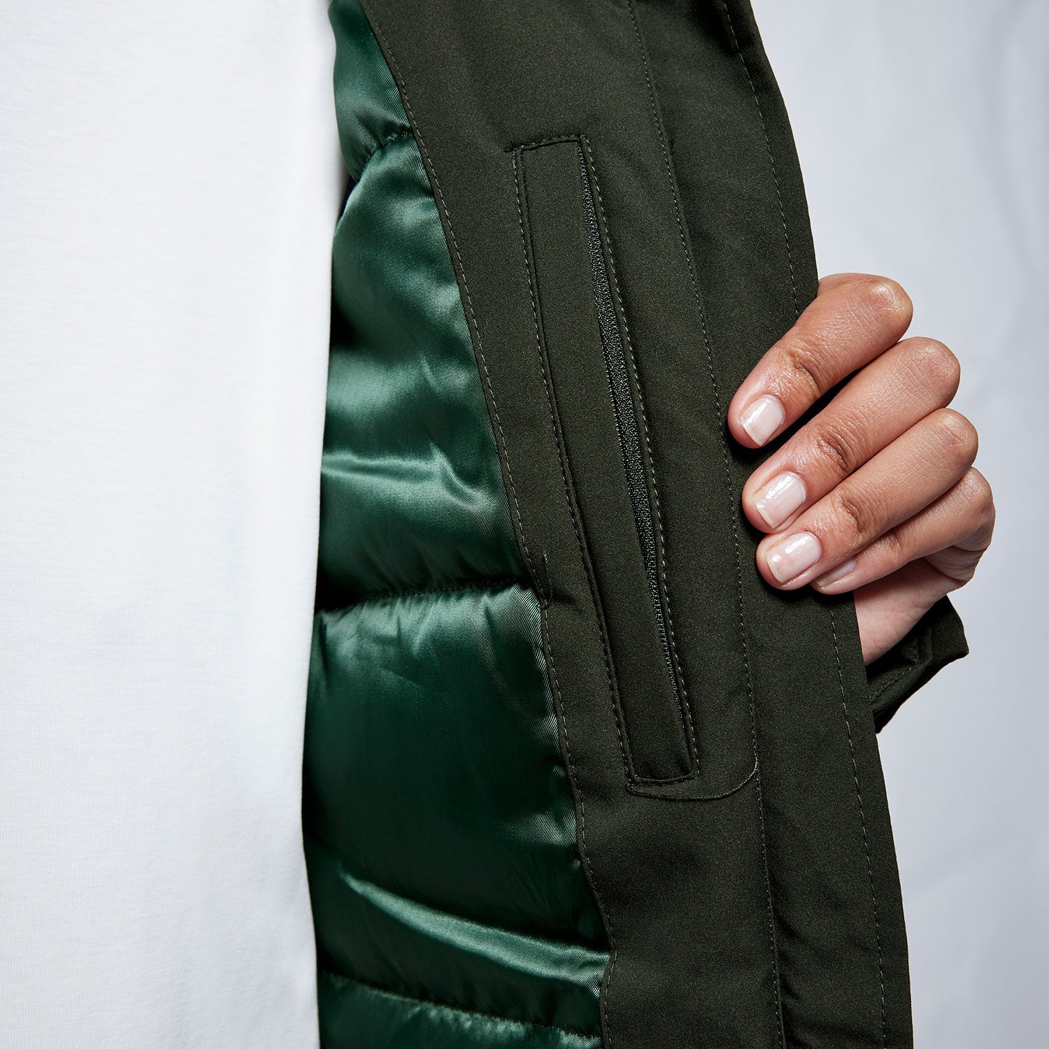 Eline er en vinterjakke med hætte med en figursyet silhuet lavet i et Pet Poly 5K-stof. Materialet er hurtigtørrende og har en vandtæt membran, der beskytter mod pludseligt regn. 4-vejs stretch tilføjer komfort, mens en strålende farveægthed bevarer jakkens friske look fra den ene sæson til den anden. Detaljer inkluderer dobbelte paspolerede lommer og vitale tapede sømme.